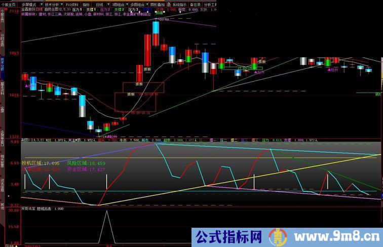 AA:=REF(CLOSE,1); BBB:=SMA(MAX(CLOSE-AA,0),5,1)/SMA(ABS(CLOSE-AA),5,1)*1000; HHH:=BBB-LLV(BBB,10); SS:=(MA(HHH,2)*3+HHH*13)/16; 短线买点:=IF(SS>13,MA(SS,2),SS)/6; 短线出击:IF(CROSS(短线买点,1) AND (短线买点<30),30,1);