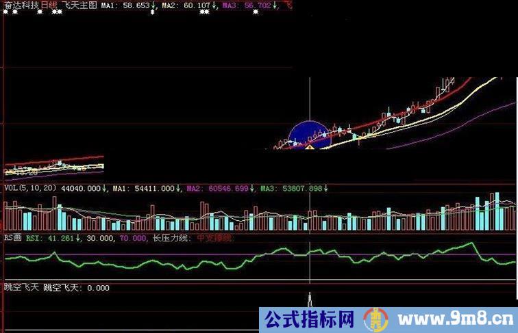 跳空飞天:REF(CLOSE,1)<飞天 AND O>飞天 AND CROSS(MA1 ,飞天);