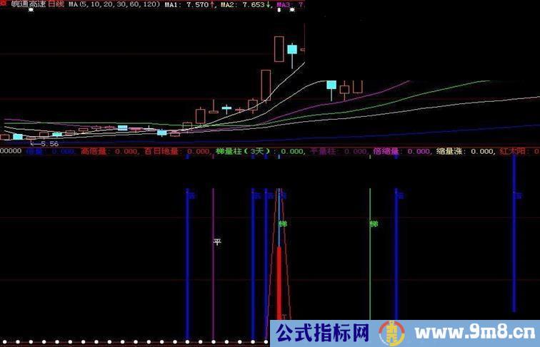 平量柱:(V/REF(V,1)>0.97 AND V/REF(V,1)<1.05 AND COUNT(CLOSE>OPEN,2)=2),STICK,LINETHICK2;