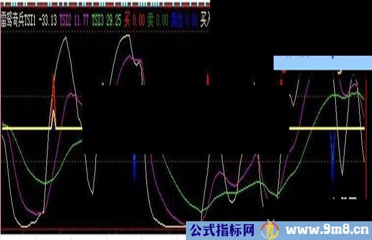 买:IF(TSI3<-45 AND CROSS(TSI2,TSI3),55,00),linethick2,colorred;