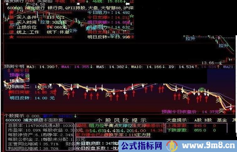 DRAWTEXTABS(15,35,'预测低一: '+NUMTOSTRN(预测低一,2)+'元'),COLORWHITE ,linethick1;