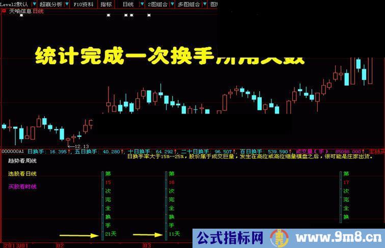 日换手:SUM(VOL,1)*100/CAPITAL,colorf0f000,LINETHICK0 ;