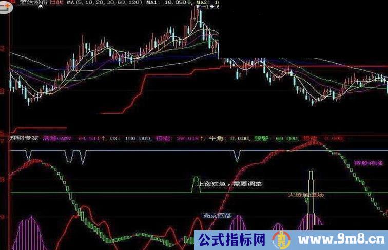 DRAWTEXT(VAR29 AND COUNT(VAR29,30)=1,70,'上涨过急,需要调整'),COLORWHITE;
