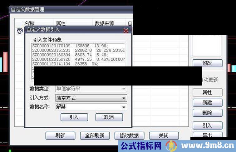 1、将解禁.txt导入到自定义数据里,名称必须是解禁。该数据是从同花顺官网导出的,可靠