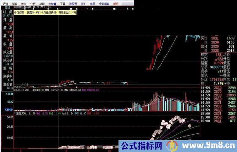 低位笑脸表明开始走牛。高位笑脸消失表明开始走弱。2014年7月23日大盘开始第一个笑脸,这一轮牛市从此确立,中信证券同一天出现第一个笑脸,是真正的牛股。还有中铁二局