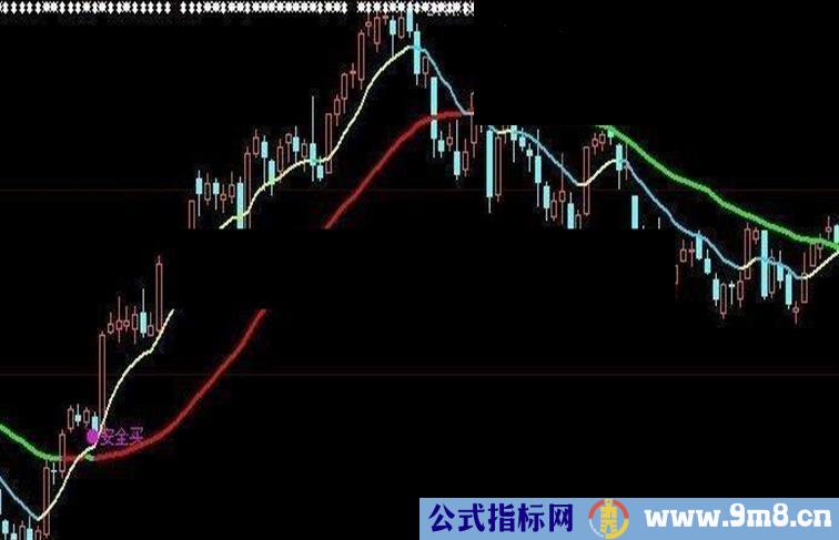 DRAWTEXT(CROSS( C,MA10) AND CYC5>MA10 AND "KDJ.J">"KDJ.D" OR CROSS( CYC5,MA10),L,'●安全买'),COLORFF00FF;