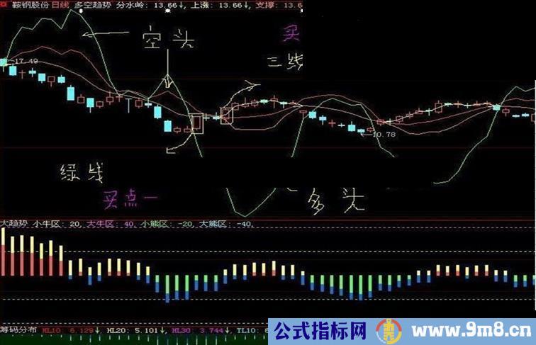 支撑: REVERSE(上涨)+2*分水岭,COLOR4397FE;