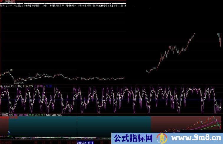本指标为附图,图中显示的为日线牛熊划分段,