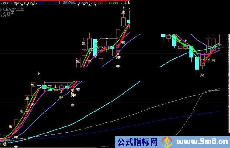 PARTLINE(趋势线,CLOSE>=趋势线),colorred,LINETHICK4;