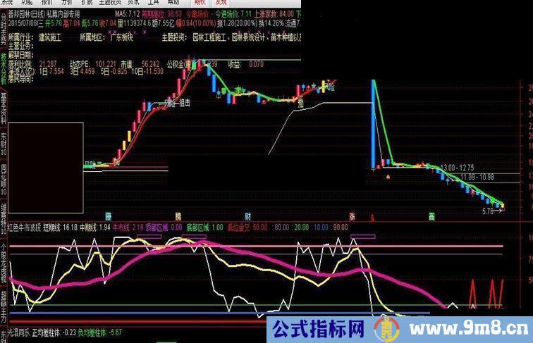 (中期线>=牛市线 OR REF( 短期线,1)<1 )),COLORRED,LINETHICK3;