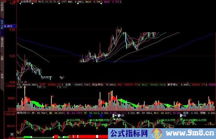 底部: IF(Vars4<15 AND Vars5<20 AND Vars6<50 AND BARSCOUNT(CLOSE)>25,-100,0),stick;