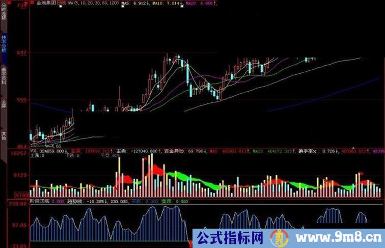 STICKLINE((趋势线 >230 ),250,趋势线,0.8,1),LINETHICK6,colorgreen;