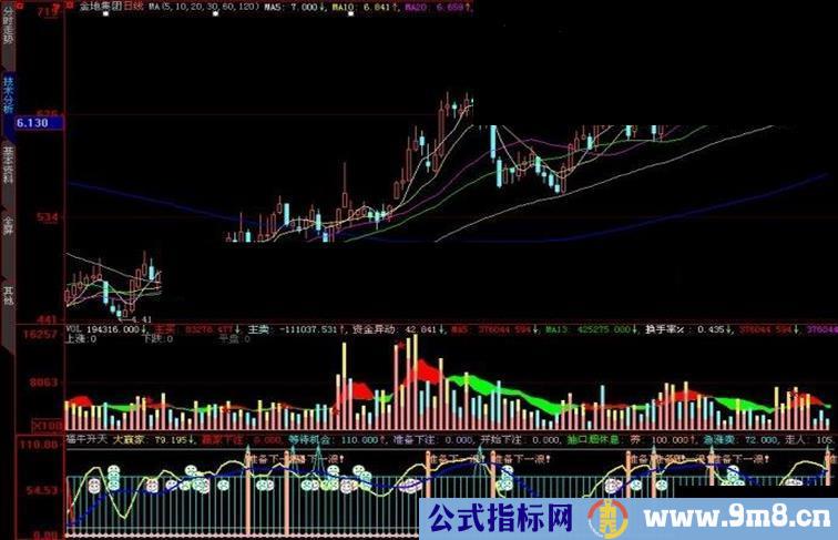 等待机会: IF(CROSS(MA(大赢家,9),大赢家) AND 大赢家>70,110,72),LINESTICK ,