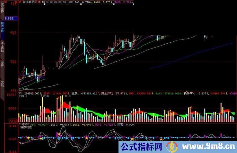 N:=22;jj:=(HIGH+LOW+CLOSE)/3;qj0:=vol/IF(HIGH=LOW,4,HIGH-LOW);
