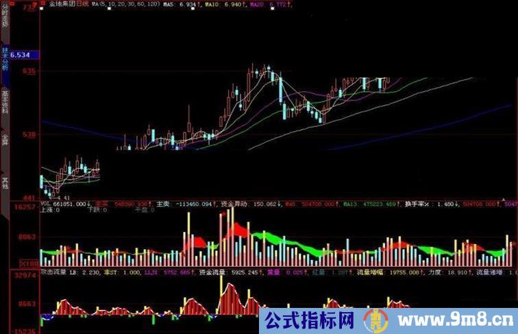 流量增幅:IF(((LLJX > 0) AND (ZJLL < 0)),ABS(QZJJ),IF((((LLJX < 0) AND (ZJLL < 0)) AND (LLJX < ZJLL)),(0 - QZJJ),QZJJ)),LINETHICK0,coloryellow;
