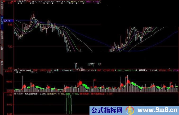绝对底部:STICKLINE( FILTER(绝对=1,5),0 ,1.5,5 , 0.8),colorred;