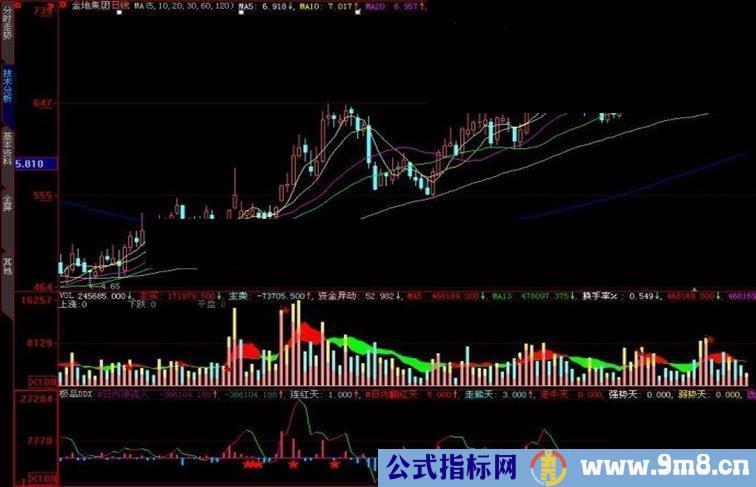M日内翻红天:COUNT(进出量>0,M),COLORRED;