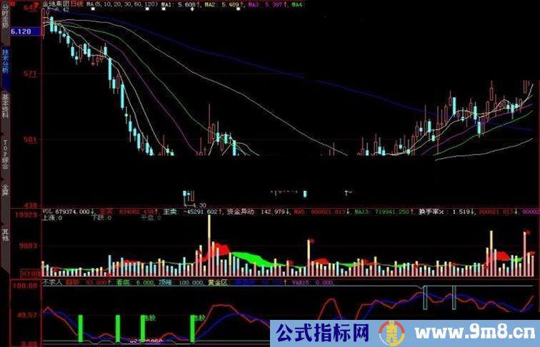 看底:IF((趋势-VAR6<(-65)),1,6),COLOR00FF00;