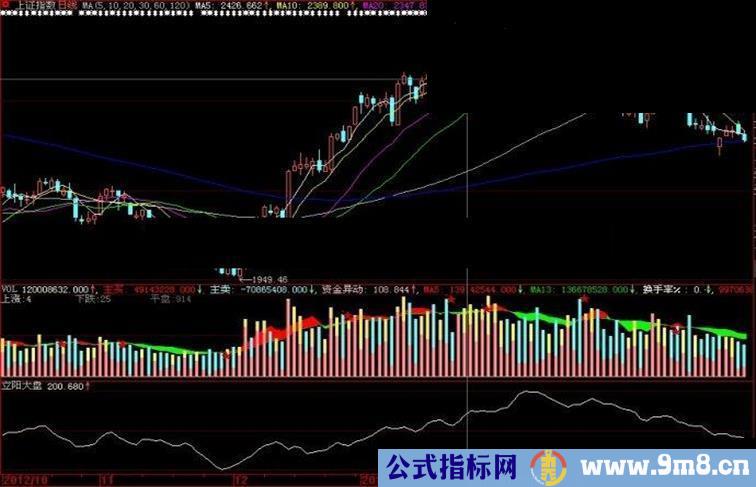 注意它不是主图指标,只是副图指标,像MACD一样,在主图下面与其他指标配合使用供我们参考,用来判断大盘未来走势。只能用于指数分析,个股不能使用。