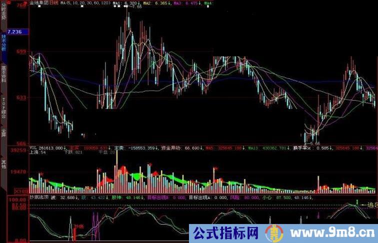 目标出现B:IF(CROSS(股海,90) AND (股神<40),70,0),COLORFF00FF;