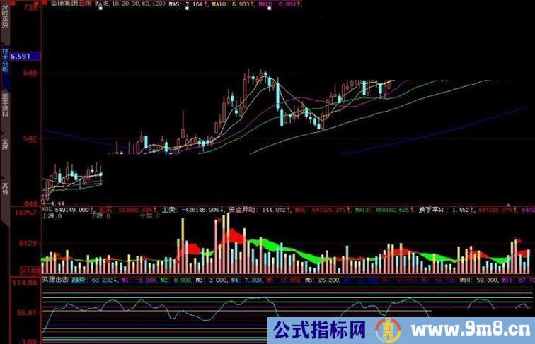 趋势:EMA(((CLOSE-V1)/(V2-V1))*(100),4),CoLorFFFF00;