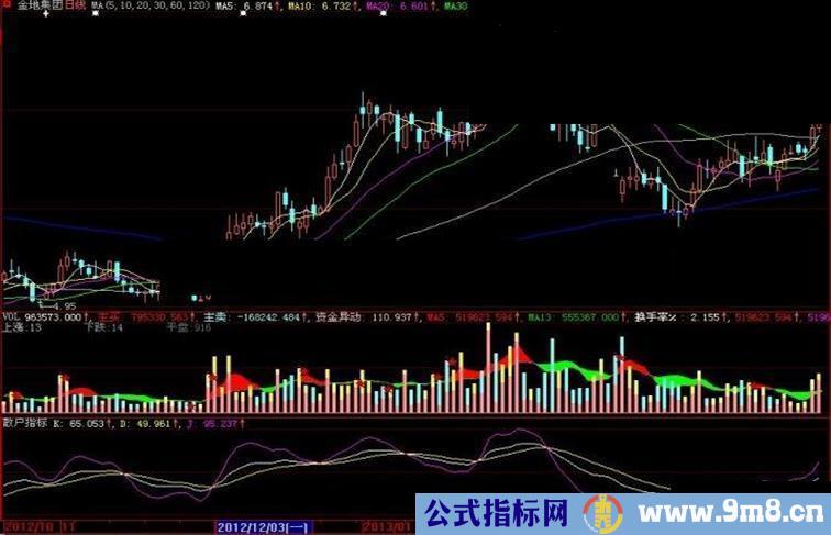 源码 VAR2:=EMA(VAR1,21); VAR3:=STD(VAR1,21); VARA:=(VAR1-VAR2)*100/VAR3; K:(EMA(VARA,21)+100)/2-3; D:SMA(K,5,1); J:3*K-2*D;
