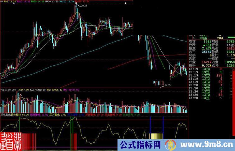 卖出警戒: IF(股价趋势>=85,50,0),stick,linethick3,colorred;