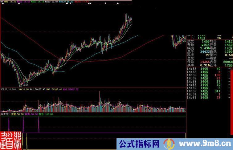 Var9:=IF(100*VOL/CAPITAL>10 AND 100*VOL/CAPITAL<18 AND SMA(Var8,5,1)>50 AND Var1>Var2,150,100);