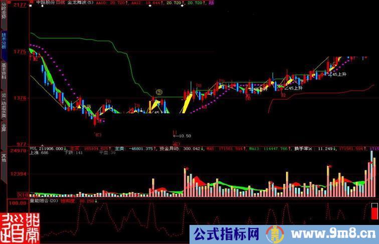 饱和度:IF((AMOUNT/C)/(HHV(AMOUNT,N)/HHV(C,N))*100>100,100,(AMOUNT/C)/(HHV(AMOUNT,N)/HHV(C,N))*100),DOTLINE,COLORred;