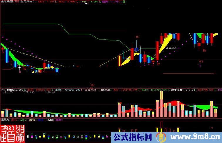 高卖:STICKLINE(((VAR7 > VAR6) AND (VAR7 > VAR8)),0,VAR7,4,0),colorFF00FF;