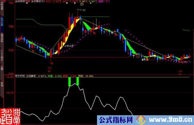 积极:IF(SUM(HS,3)>=N*3,1,0),COLOR0000FF,POINTDOT,LINETHICK0;