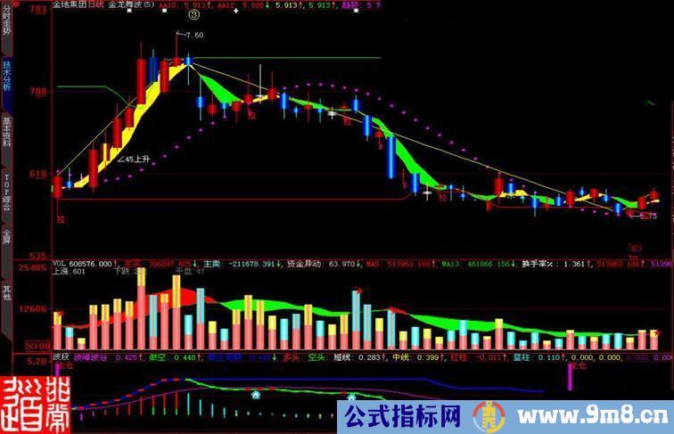 波峰波谷:SMA(拉升力A,3,1),COLORFF00FF;
