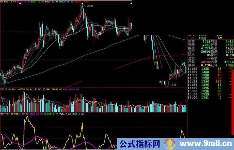 主力拉升: IF(VAR7>0.05,VAR7,0),LINETHICK2;