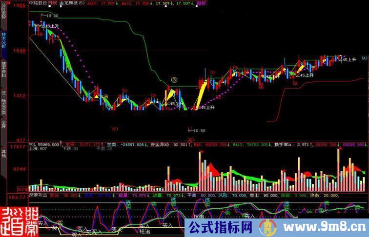 DRAWTEXT(CROSS(多头,攻击) AND 多头>能量,多头-15,'短追'),COLORWHITE,linethick2;