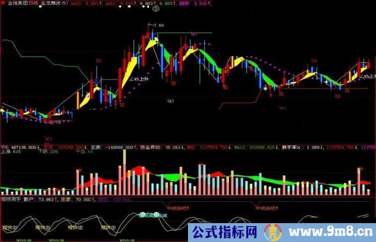 DRAWTEXT(VarA>0 AND CROSS(VarC,VarA),90,'中线逃吧!'),COLOR0033FF;