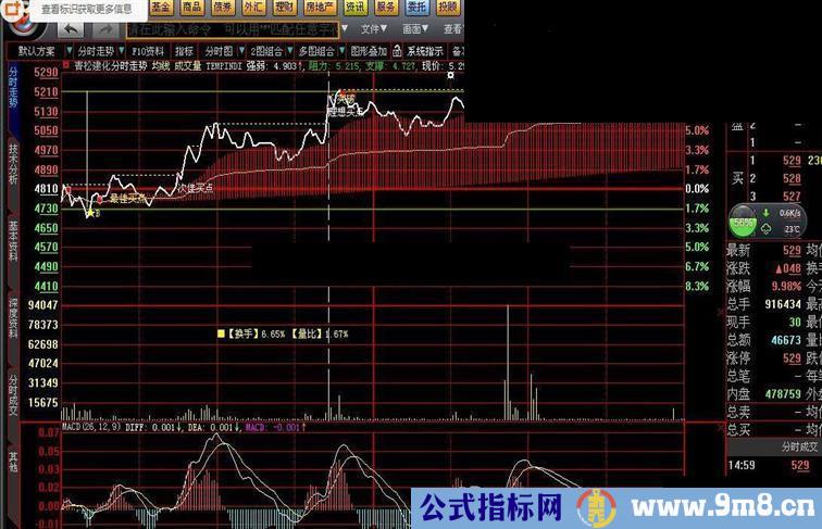 DRAWTEXTREL(250,735,'■【换手】'+NUMTOSTRN(DYNAINFO(37)*100,2)+'%'+' 【量比】'+NUMTOSTRN(DYNAINFO(17),2)+'%'),ColorYellow;