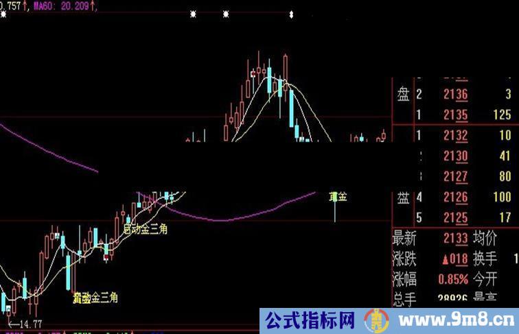 这个是我个人用了几年的金三角指标,经过几次修改现在信号少,但是更加准确!