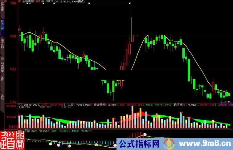 ma10拐点:STICKLINE(ma10gdxg and count(ma10gdxg,10)=2,h*1.1,l*0.9,5,0),colorffffff;