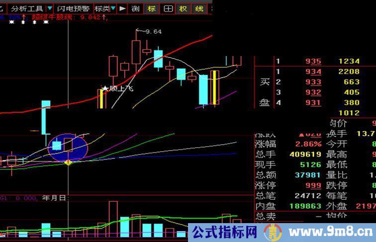 此信号出现于拉升途中或阶段底部箱型震荡等形态中。