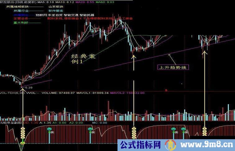 沉船寻宝副图说明:无未来函数,有明显的阶段底部提示。通达信、大智慧、同花顺软件可通用。操作简单,“宝物”出现买入,“卖”信号出现卖出。指标点评:各种指标就像成品衣服一样,能穿上合身的很少,我说它很“精准、稳赚…”,你相信吗?再说,流行的指标成千上万,每天都循环滚动,这个指标也是其他老师发过后,经个性化处理的。提醒新股民朋友,不要花时间和精力迷恋任何指标,赚大钱的老师,都不是用指标赚的!春节将至,就用这个观赏指标祝福各位老师、各位同学:炒股快乐、马年大吉、马到成功、马上赚钱!!!