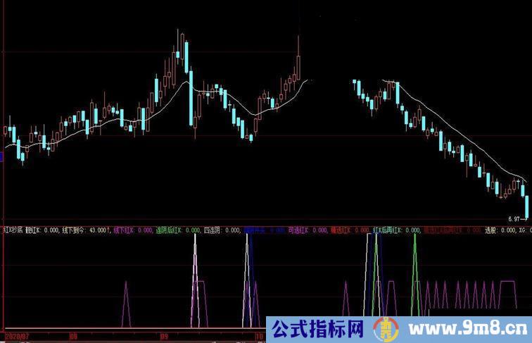 DD2:=L EE2:=V 靓红K:BB2 AND CC2 AND DD2 AND EE2,linethick2; MA1:=MA(CLOSE,1); 涨停:=IF((C-REF(C,1))*100/REF(C,1)>=(10-0.01*100/REF(O,1)),1,0); A0:=(L+H+C*2)/4; 抄底线:=EMA(A0,14); 红K:=c>o or (c>ref(close,1) and c=o) and h<抄底线; 绿K:=not(红K) and h<抄底线; 涨停到今:=BARSLAST(涨停); 线下:=c<抄底线; 线下到今:BARSLAST(cross(抄底线,ma1)),linethick0; 线下红K:(红K and 线下)*0.5; 连阴后红K:线下红K and ref(绿K,1) and ref(绿K,2) and ref(绿K,3),linethick2; 四连阴:ref(绿K,1) and ref(绿K,2) and ref(绿K,3) and ref(绿K,4),linethick2; 四阴开买:ref(四连阴,1); 可选红K:(靓红K and 线下红K)*0.8; 精选红K:靓红K and 连阴后红K,colorred,linethick2; xg到今:=BARSLAST(精选红K); 红K后再红K:(h