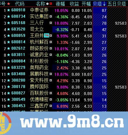 五日贝塔 集合竞价抓涨停 大智慧/通达信通用副图/选股指标 源码 贴图