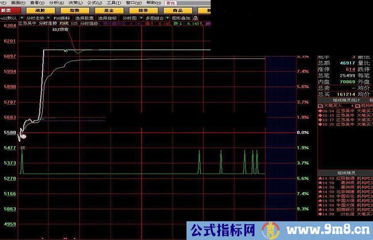 涨↑:if(A>分水岭,A,分水岭),LINETHICK1,colorred;