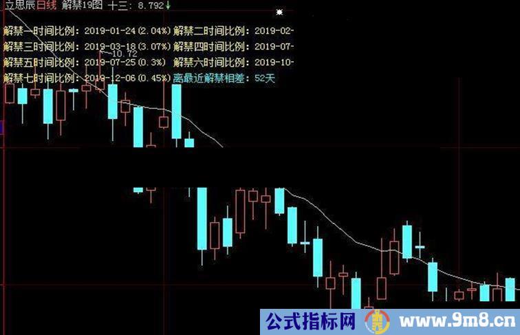 每次的解禁时间和比例都会显示在主图,并随有自动计算出离解禁天数显示出来。