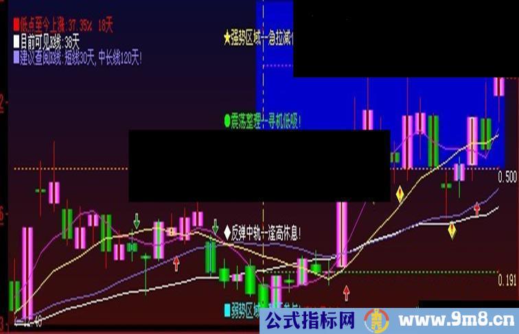 DRAWTEXTREL(10,130,'■目前可见K线:'+NUMTOSTRN(W+1,0)+'天'),colorwhite;
