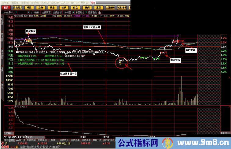 3、分时指标买点B有未来函数,请谨慎使用。但是结合K线图、趋势、均线使用的话倒是很不错的。