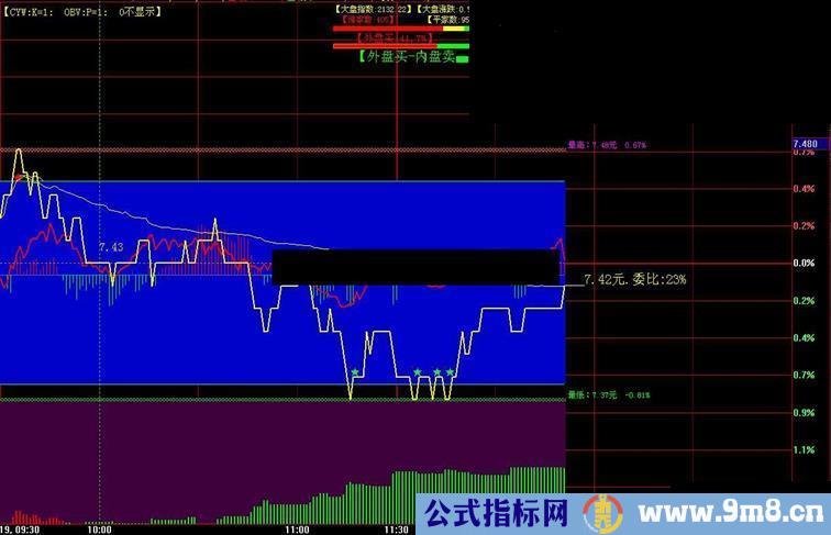 【CYW和OBV】加在分时主图上.能够充分说明量价的关联.看清楚成交量和价格涨跌的关系因为【CYW和DBV】都是由量价元素编辑的公式.放在主图是可以一目了然.由于坐标的原因我们设置了参数你可i以默认参数k=1.p=1.实际使用是可按需要调整甚至可以是零点几.要是不想看时设置为k=0. p=0.