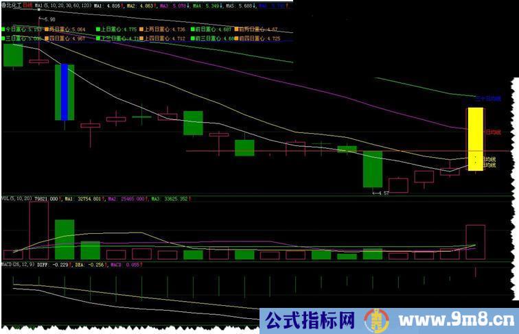 九毛八公式指标 » 均线+线后文字+涨跌停提示+重心提示+九日价画线主图 加入收藏