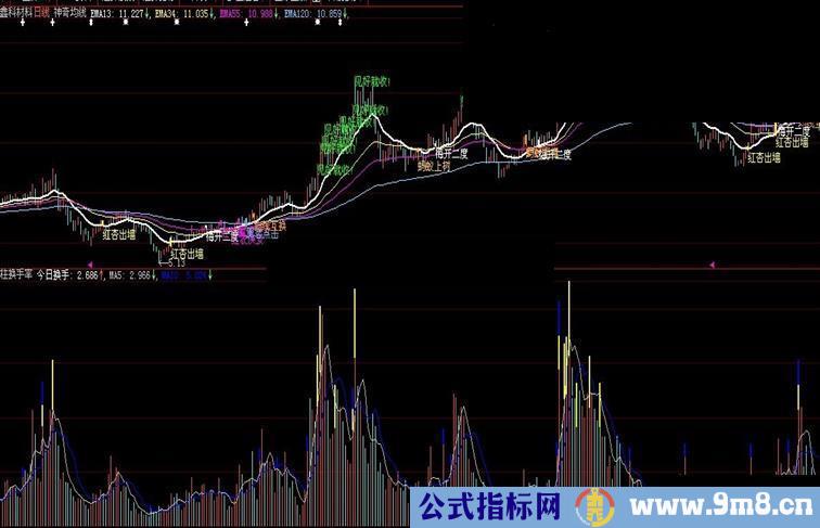该均线系统视角独特,操作简便,实战性强。该指标选择的买卖点只是组合系统的一部分,该系统有13个以上买卖点:如底部形态之“红杏出墙“和“蚂蚁上树“;