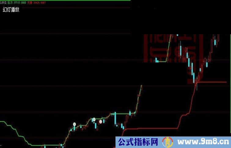 支撑:LLV(MA((LOW+HIGH+CLOSE)/3,1),34),LINETHICK2,COLORRED;
